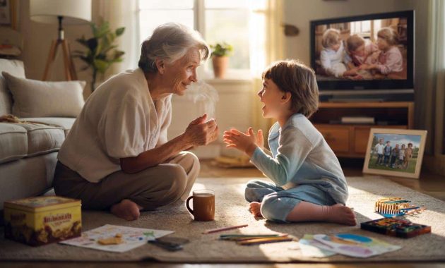 The old family living room was a little too warm, the TV a little too loud, and the biscuit tin suspiciously always full. On the sofa, a seven-year-old was telling a story about school, complete with wild hand gestures and half-finished sentences. His grandmother wasn’t checking her phone or rushing him toward the point. She was leaning in, eyes wide, as if this was the most important briefing of her day.