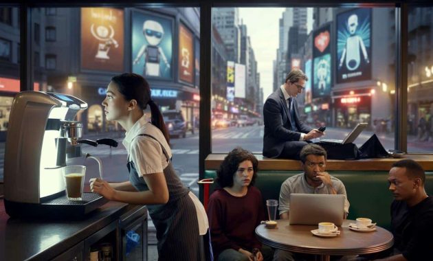 The café was full, but strangely quiet. Half the people had laptops open, the other half just scrolled on their phones, eyes glazed in the same blueish light. A barista complained softly that the new automatic espresso machine did the work of two people, and maybe, one day, it would do hers too. No one looked up.