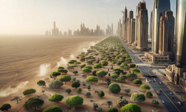 Grüne Träume zwischen Glasfassaden und Sandsturm