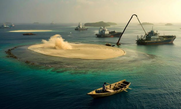 This sand-dumping marathon started in the early 2010s, quietly at first, then with brutal speed. Within a few years, flat, tan platforms appeared where sailors once steered carefully around shallow reefs. The sea itself was being re-drawn by heavy machinery, not by tides or time.