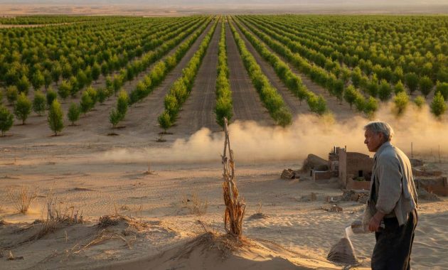 Und dann sieht man einen vertrockneten Setzling in der Hand eines Bauern, der leise den Kopf schüttelt.