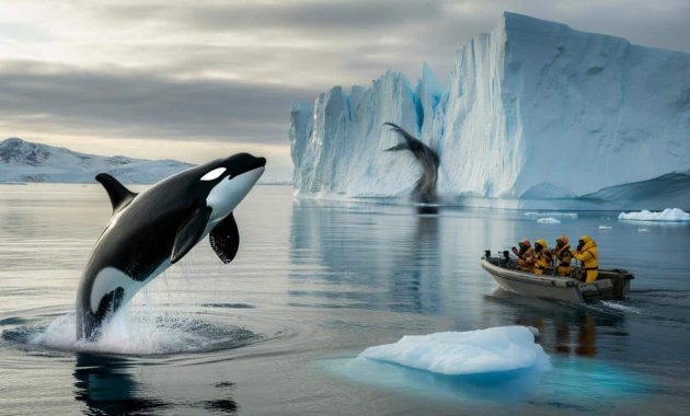 The first thing you notice is the sound. Not the distant groan of the ice, not the wind scraping across the fjord, but a rush of air and water right where nobody expects it. An orca’s black-and-white body explodes out of the steel-blue sea, so close to a fractured ice shelf that the spray lands on it like cold rain. Researchers on a small boat grip the rails. The ice edge under them is no longer a clean wall – it’s a jigsaw puzzle coming apart in real time.