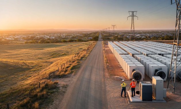 On paper, the first stage of this mega-battery in central Queensland looks almost dull: megawatts, megawatt-hours, connection points, commissioning dates. Out here, it feels anything but dull. It feels like a new kind of power station — one that doesn’t roar, doesn’t smoke, doesn’t throw steam into the sky. It just sits and waits.