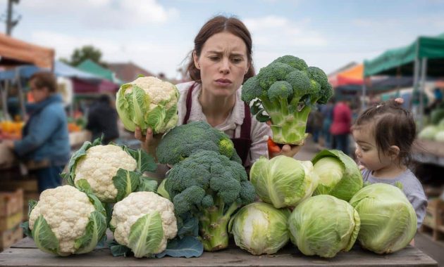 The woman in front of me at the farmer’s market squinted at the crates, visibly puzzled. “So… broccoli is just green cauliflower, right?” she asked the vendor, holding a huge white head in one hand and a dark green tree of florets in the other. A kid tugged at her sleeve, pointing at a pile of shiny cabbage. “Can we get that too?” he said. The mother laughed. “We can’t eat the same thing all week.”
