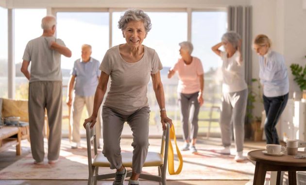 - Simple moves you already know – Chair stands, heel-to-toe walking, gentle stretches in the living room.