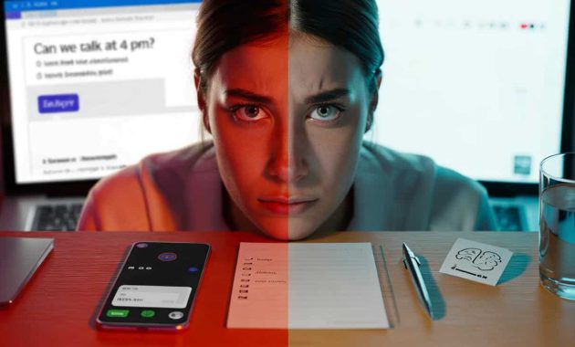 She replays the last meeting: did she sound defensive, did she send the report too late, did someone complain?
