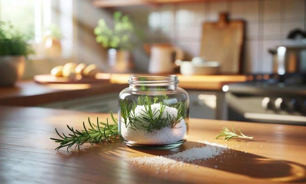The first time I saw it, I thought it was just pretty kitchen decor. A small glass jar on a friend’s shelf, packed with coarse white crystals and sprigs of deep green rosemary pressed against the sides. Sunlight hit the glass and the whole thing looked like something out of a lifestyle magazine. When I picked it up, the scent rose up straight away – sharp, herbal, almost like the sea meeting a pine forest.