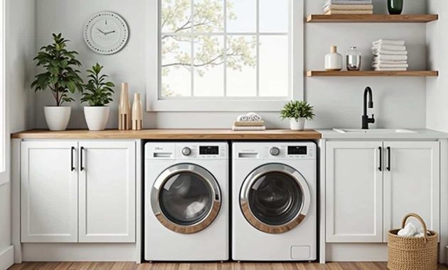The area hovering above your washer and dryer is prime real estate that often remains empty. A simple countertop fixed on top of two appliances instantly creates a folding station. Shallow shelves above that counter can store daily products in secure containers.